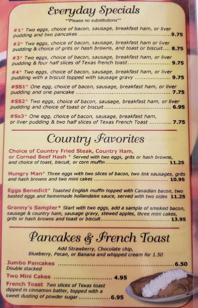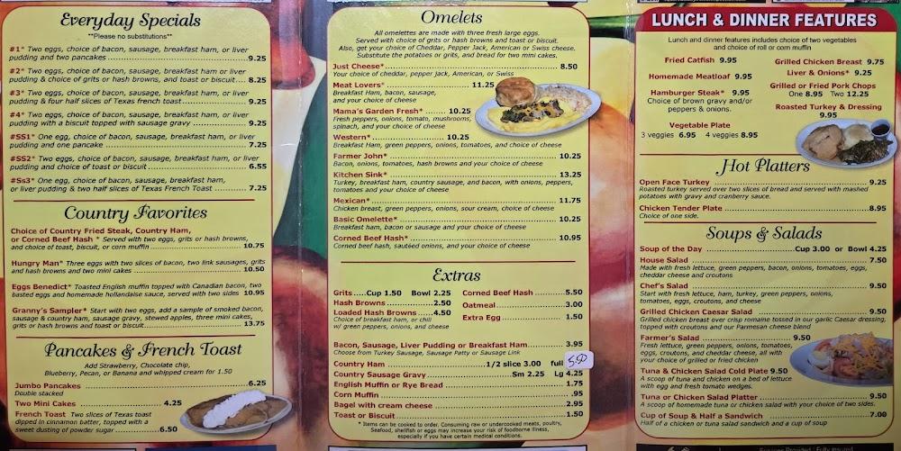 For lunch and dinner, enjoy a variety of sandwiches and hearty entrees like homemade meatloaf and grilled chicken breast. Their fried catfish is a local favorite and comes with generous portions.